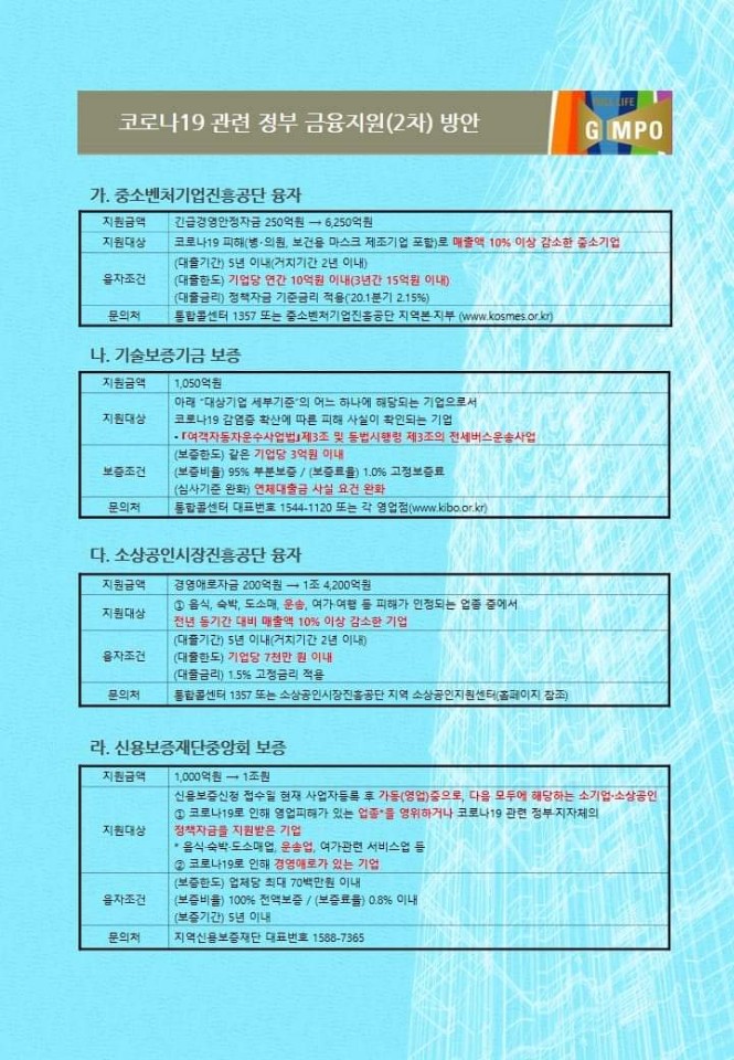 코로나119 관련 정부 금융지원(2차)방안